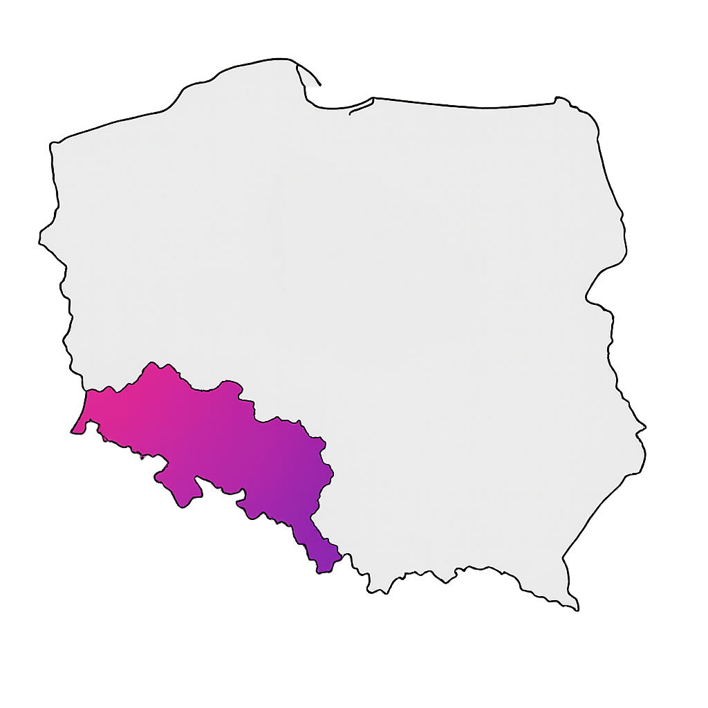 województwo dolnośląskie, województwo opolskie, województwo wielkopolskie Miasta Wrocław, Opole, Legnica, Jelenia Góra, Brzeg, Jawor, Żary, Lubin, Bogatynia